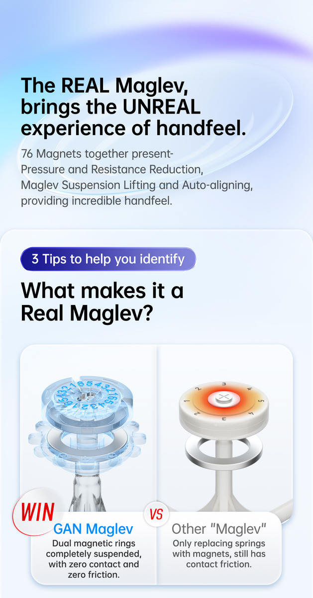 GAN356 M Maglev on paranneltu versio GAN356M kuutiosta. Nimensä mukaan tässä kuutiossa on edelliseen verrattuna Maglev ominaisuus, jossa perinteiset jouset ovat korvattu kahdella toisiaan hylkivällä O-magneetilla. Kuutiota on saatavan kahdessa versiossa, Frosted-pinnoitteella ja parempaa pitoa tuovalla UV pinnoitteella
